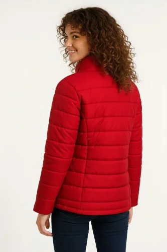 • Mikro Su İtici Kapitone Baskılı Astarlı Fermuarlı Bomber Mont Kırmızı